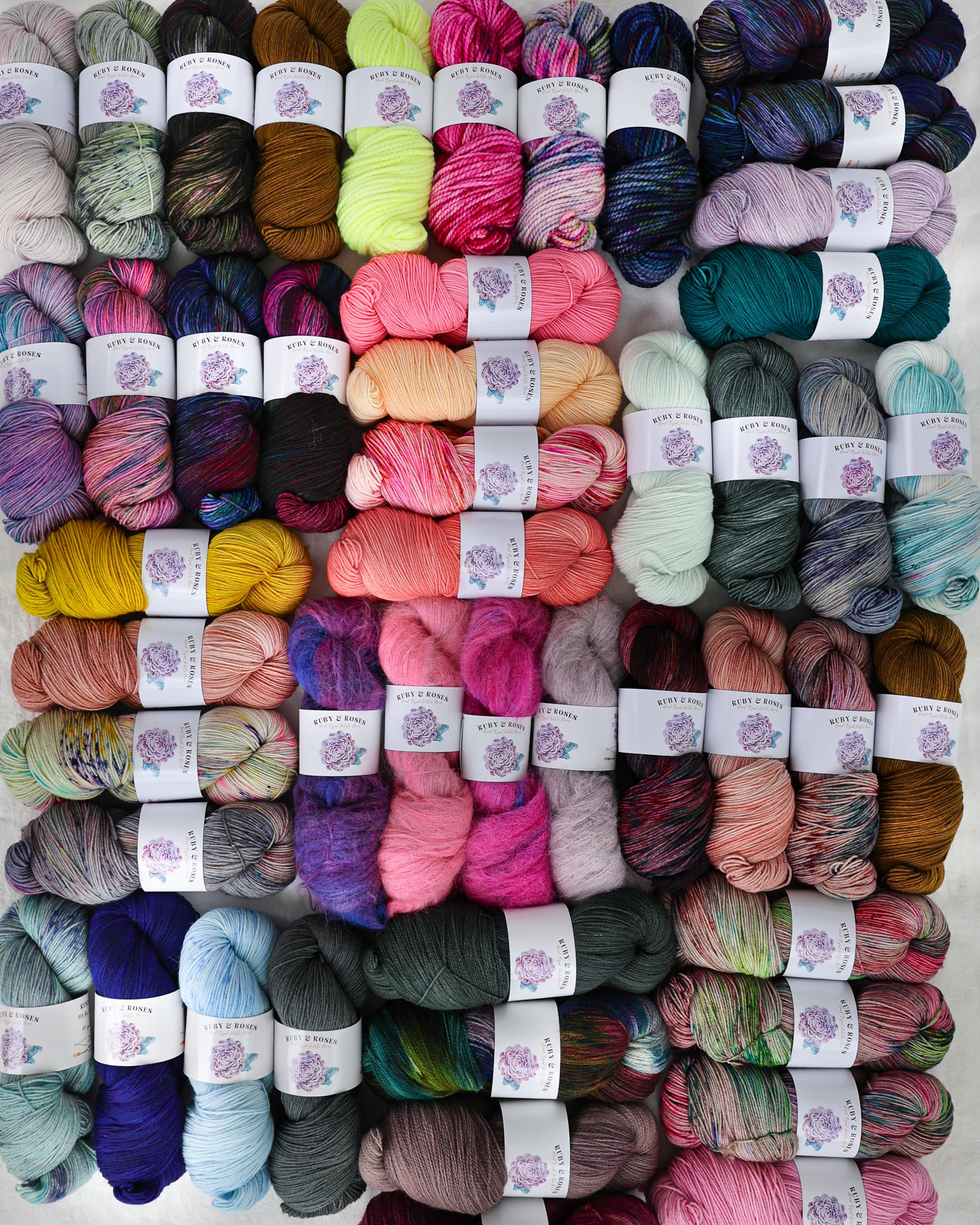 I’m Addy, the artist and founder of Ruby & Roses Yarn and I’m so glad you’re here! I specialize in creating speckled colorways that I like to think are little works of art that are the result of countless hours of creativity and experimentation.