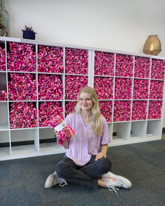 I’m Addy, the artist and founder of Ruby & Roses Yarn and I’m so glad you’re here! Some call me the queen of speckles, and while that might be because I speckle everything in sight, I’d like to think it’s a result of my love of experimenting with new techniques of color blending and idea generating.